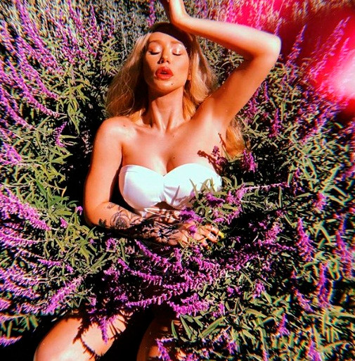 Cách đây ít ngày, nữ rapper người Úc diện bikini trắng tạo dáng giữa vườn hoa oải hương tím.