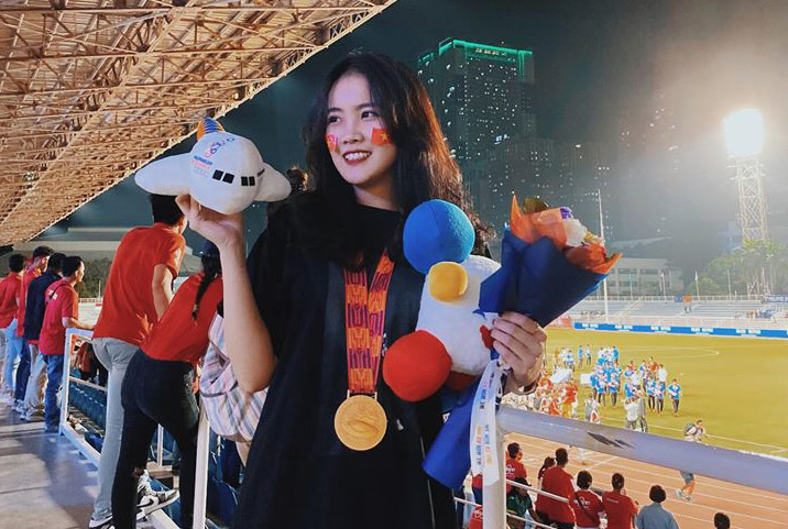 Được biết, ngay sau khi nhận HCV bộ môn bóng đá nam tại SEA Games 30 danh giá, Đoàn Văn Hậu đã dành tặng cho “nửa kia” của mình trên khán đài Rizal Memorial. Trên trang cá nhân, Hoàng Anh cũng đăng tấm ảnh đeo HCV, tay cầm linh vật của SEA Games kèm caption: "We win as one".