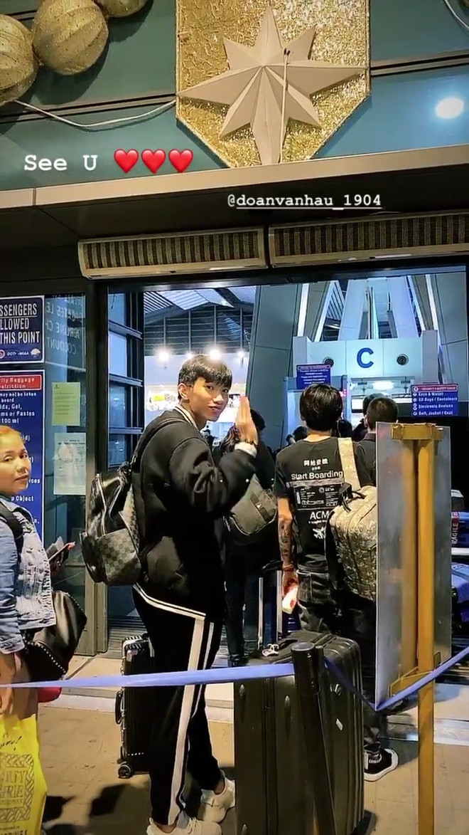 Chiều tối 11/12, Hoàng Anh đăng đoạn video ra sân bay tiễn Đoàn Văn Hậu lên đường sang Hà Lan để tiếp tục thi đấu tại CLB SC Heerenveen. Trong clip, hậu vệ tuyển Việt Nam nở nụ cười tươi, lưu luyến vẫy tay tạm biệt bạn gái bằng nụ hôn gió.