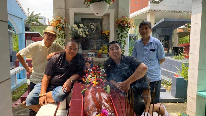 Tối 4/10, MC Quyền Linh chia sẻ loạt ảnh anh và Phước Sang, Lê Tuấn Anh đến thăm mộ của cố diễn viên Lê Công Tuấn Anh tại nghĩa trang Chùa nghệ sĩ, TP.HCM.