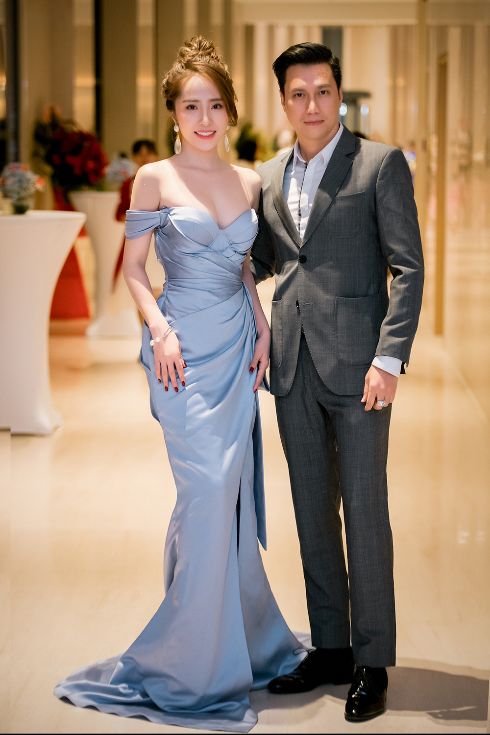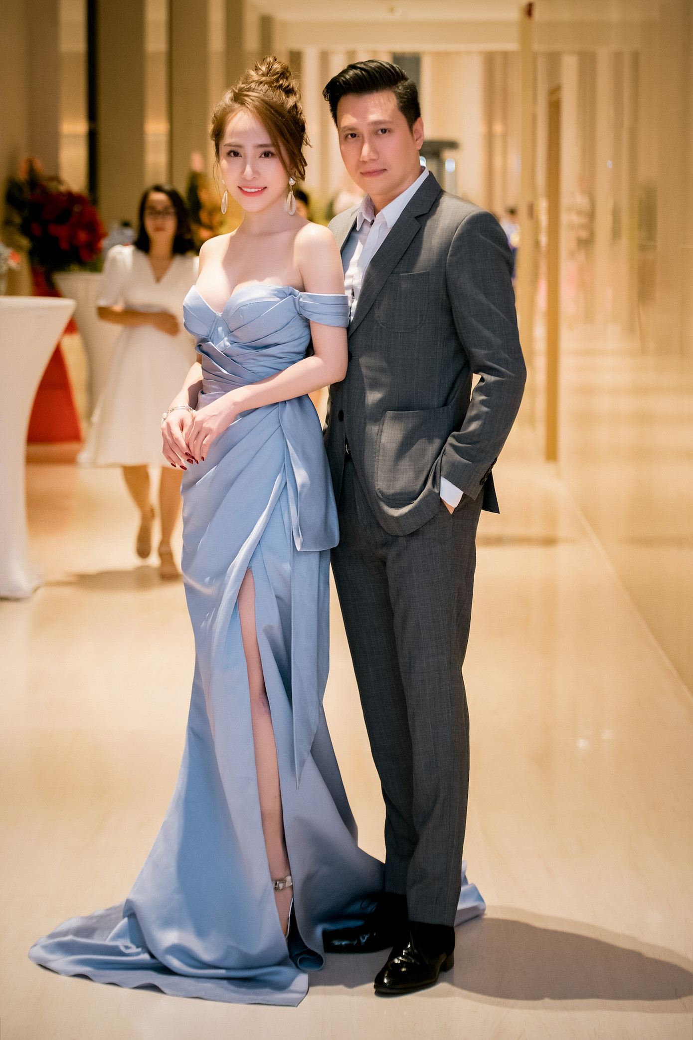 Quỳnh Nga sánh bước bên “người tình” trong phim- nam diễn viên Việt Anh tại sự kiện.