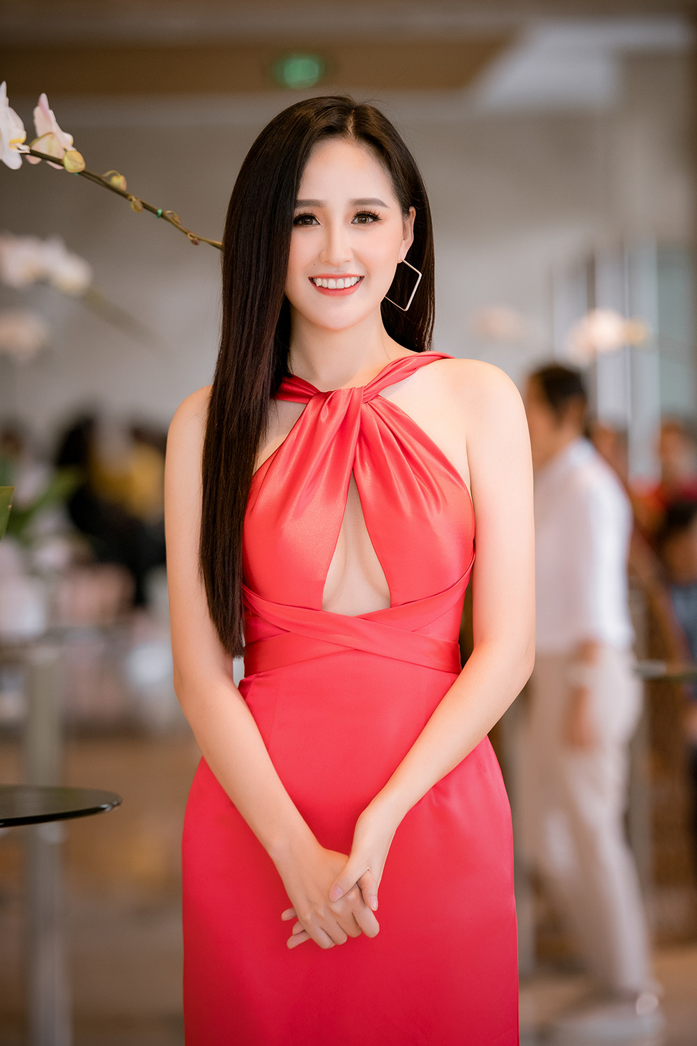 Hoa hậu Mai Phương Thuý cũng xuất hiện tại sự kiện với bộ váy đỏ khoét ngực gợi cảm.