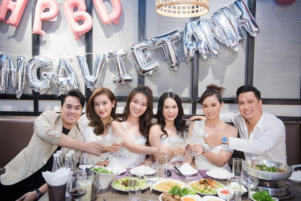 Bữa tiệc có sự xuất hiện của những người bạn thân của Quỳnh Nga, đặc biệt là diễn viên Việt Anh. Trước đó, cả hai dính tin đồn tình cảm.