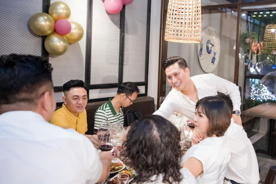 Việt Anh nhiệt tình đi chào hỏi và mời rượu các vị khách tham dự bữa tiệc sinh nhật của Quỳnh Nga.