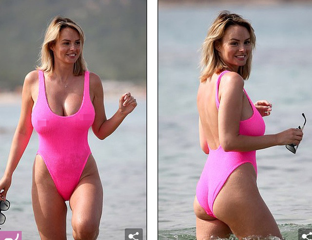 Rhian Sugden được mệnh danh là "quả đào tiên hoàn hảo" cũng bởi sở hữu vòng 1 căng đầy "nảy lửa"