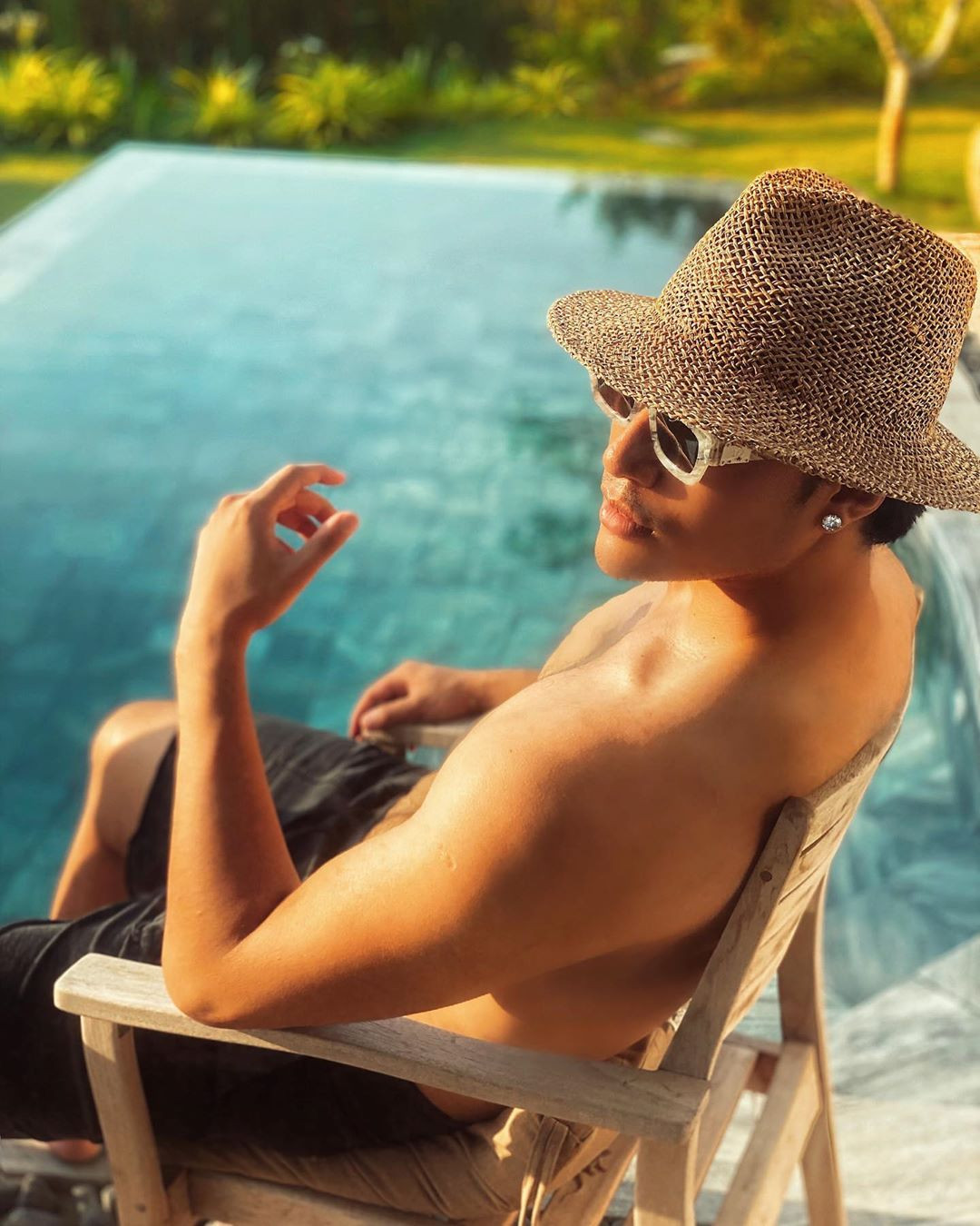 Nhà thiết kế Lý Quý Khánh tận hưởng không gian riêng tư bên hồ bơi.