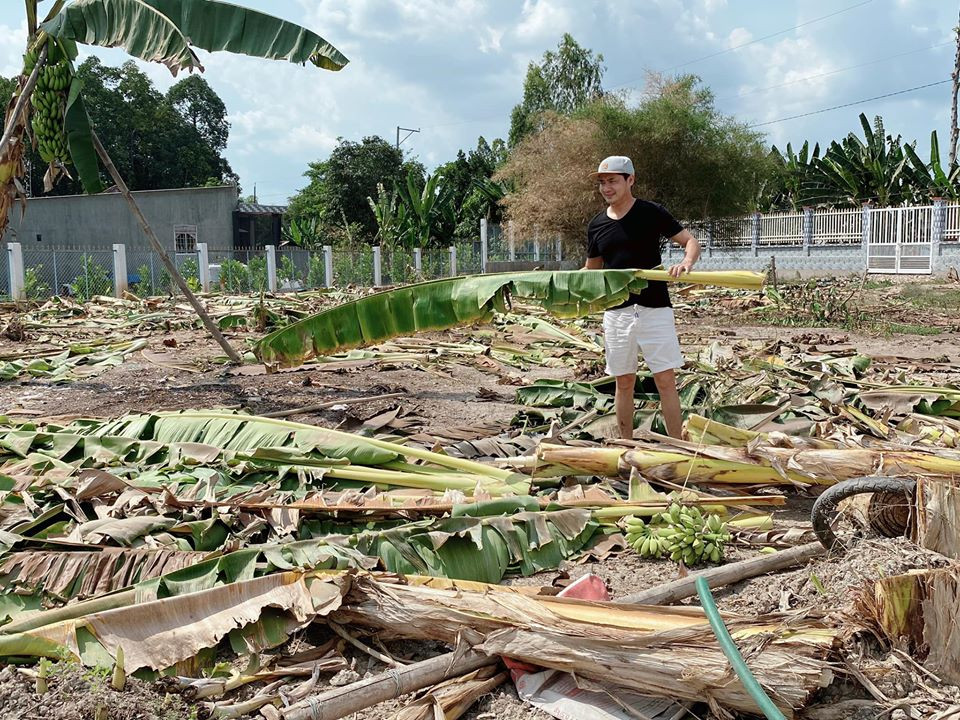 Tranh thủ nghỉ dịch, nam diễn viên Minh Luân bắt tay thực hiện kế hoạch làm giàu từ vườn nhà. “Nói không phải khen chứ, mình phá làng phá xóm hay thật, trồng mấy năm mới được vườn chuối, mình phá trong nửa ngày là sạch sẽ không còn cây nào. Dự kiến qua mùa dịch sẽ không còn gì để phá. Và hứa hẹn ngày này năm sau, sẽ có vườn trái cây xum xuê triệu quả, cùng hàng trăm con cá sẽ chờ bạn bè Sài Gòn về làm thịt. Hãy đợi đấy!”, anh chia sẻ.