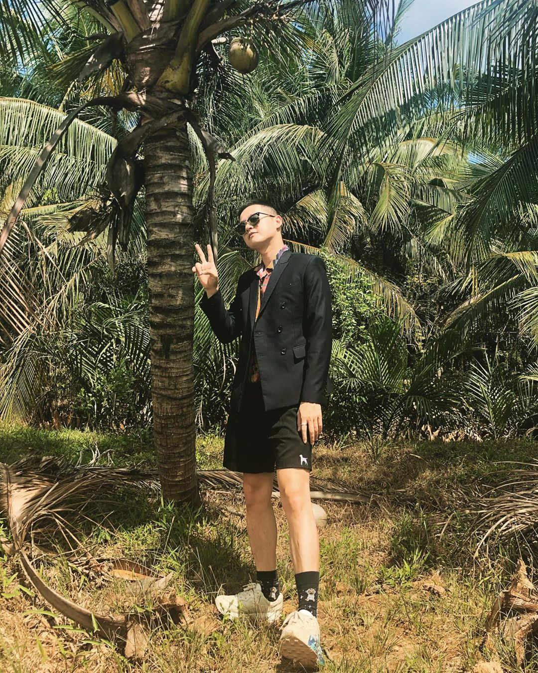 Thanh Duy Idol tạo dáng dưới gốc dừa với thời trang “trên bảnh bao, dưới thể thao”.