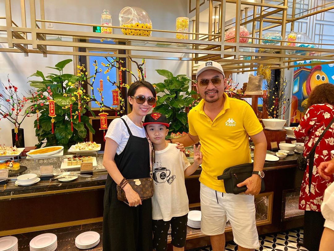 Tiến Luật – Thu Trang tươi rói dẫn con trai đi ăn nhà hàng.