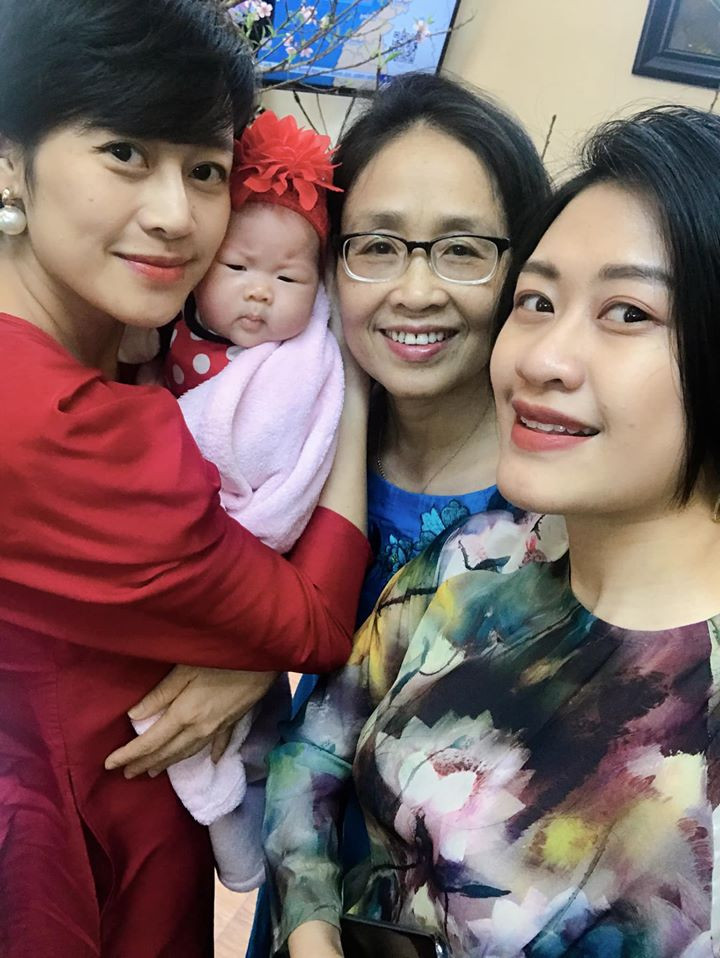MC Phí Linh ôm con gái đầu lòng về ăn Tết nhà ngoại.