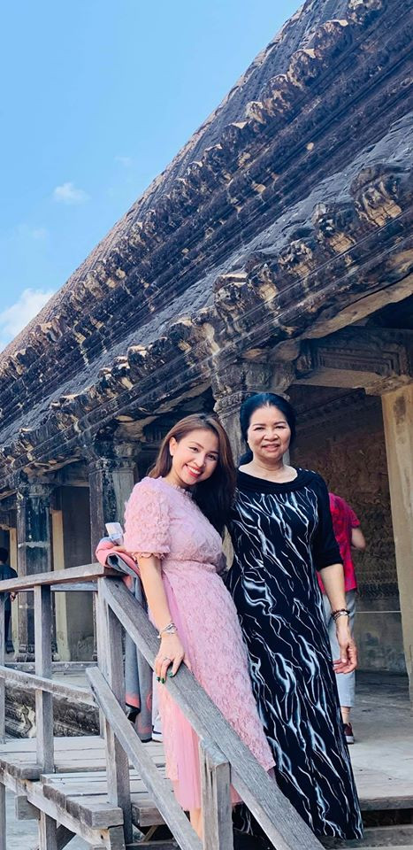 MC Thanh Vân Hugo cùng mẹ đi thăm thú đền Angkor Wat (Campuchia).