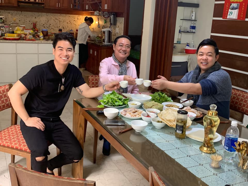 Quang Lệ chia sẻ ảnh trên bàn nhậu tại Đà Nẵng và tiết lộ: “Lần đầu ăn Tết quê hương miền Trung”.