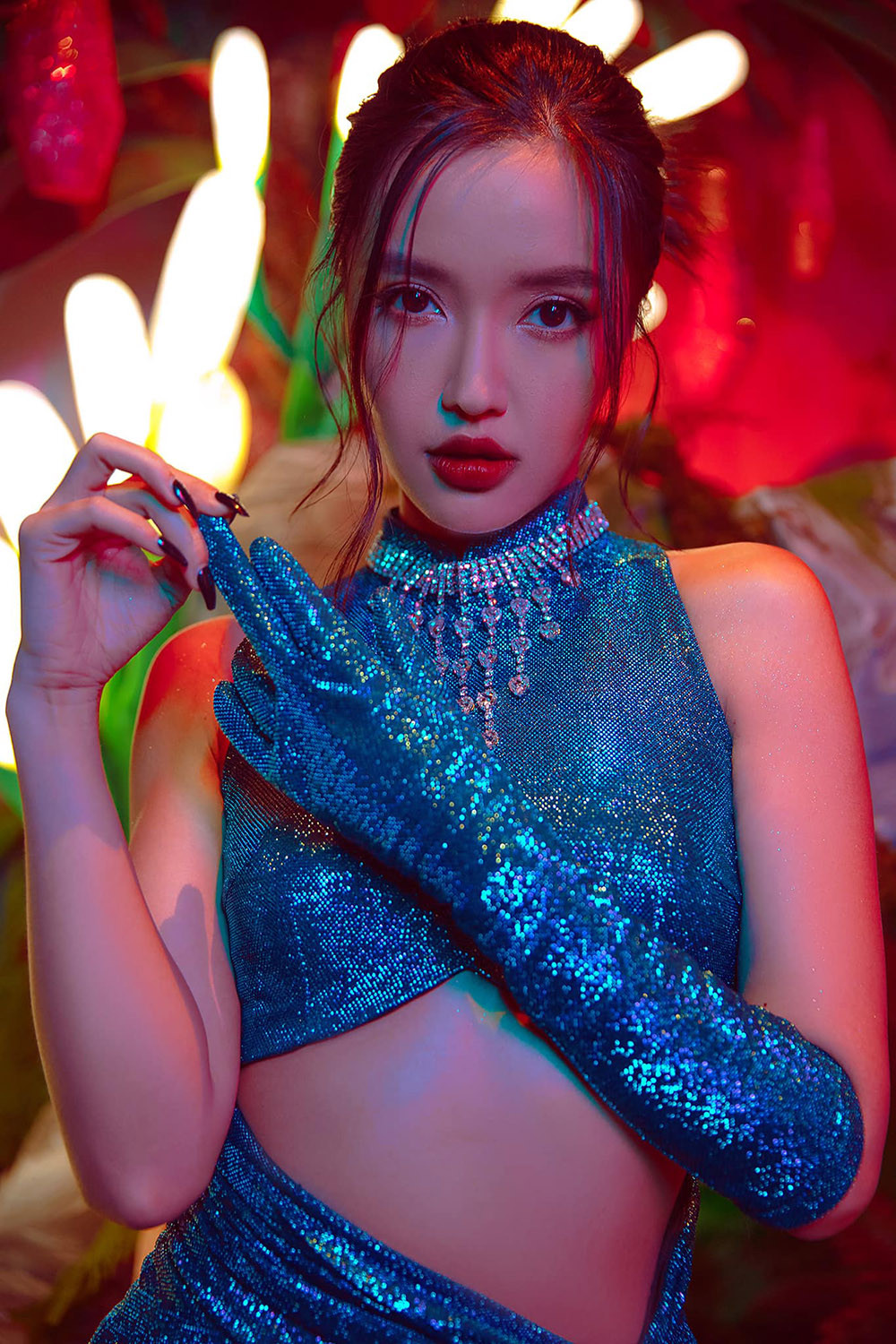 Nữ ca sĩ khiến mọi người phải trầm trồ với đôi chân dài miên man, nhỏ gọn, gương mặt thon gọn, bờ môi cong, xương quai xanh mảnh mai trong MV mới.