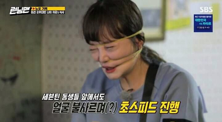 Cụ thể, chương trình đã để các thành viên cố định là Jeon So Min, Song Ji Hyo, Yang Se Chan, cùng với các khách mời là Hoshi và Mingyu (thành viên nhóm nhạc SEVENTEEN) tham gia vào thử thách buộc dây chun để giành lấy một bát mì ramen. Theo đó, nếu như thành viên nào buộc được càng nhiều dây lên mặt thì sẽ giành chiến thắng.