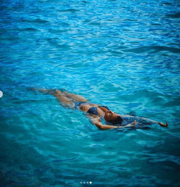 Mới đây, cô cũng đăng tải hình ảnh "mát mắt" khi thả mình vào nước biển xanh ngắt