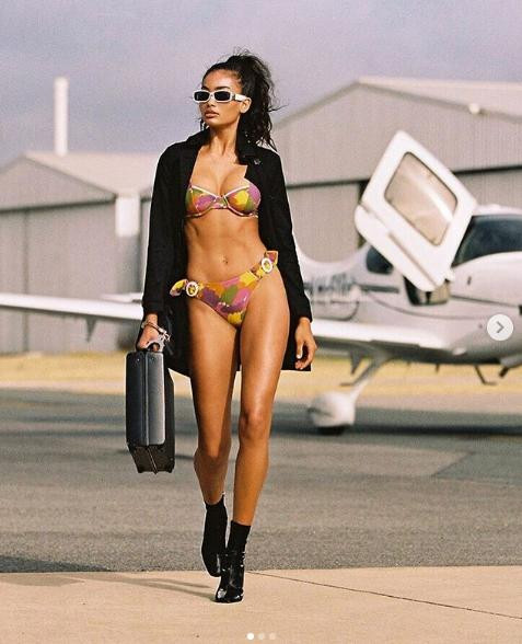 Trong bộ áo tắm 2 mảnh hoạ tiết sắc màu, Kelly Gale phô thân hình săn chắc tuyệt đẹp và đôi chân dài miên man trong những ảnh bikini mới này