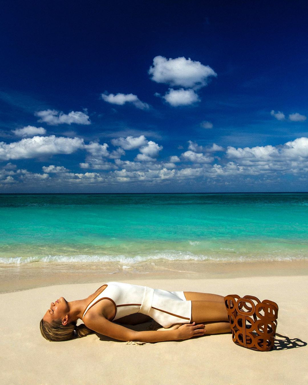 Dưới ống kính nhiếp ảnh gia gạo cội 83 tuổi Jean Daniel Lorieux, người mẫu 9x Nadine Leopold mặc áo tắm phô diễn body hoàn hảo như tạc tượng.