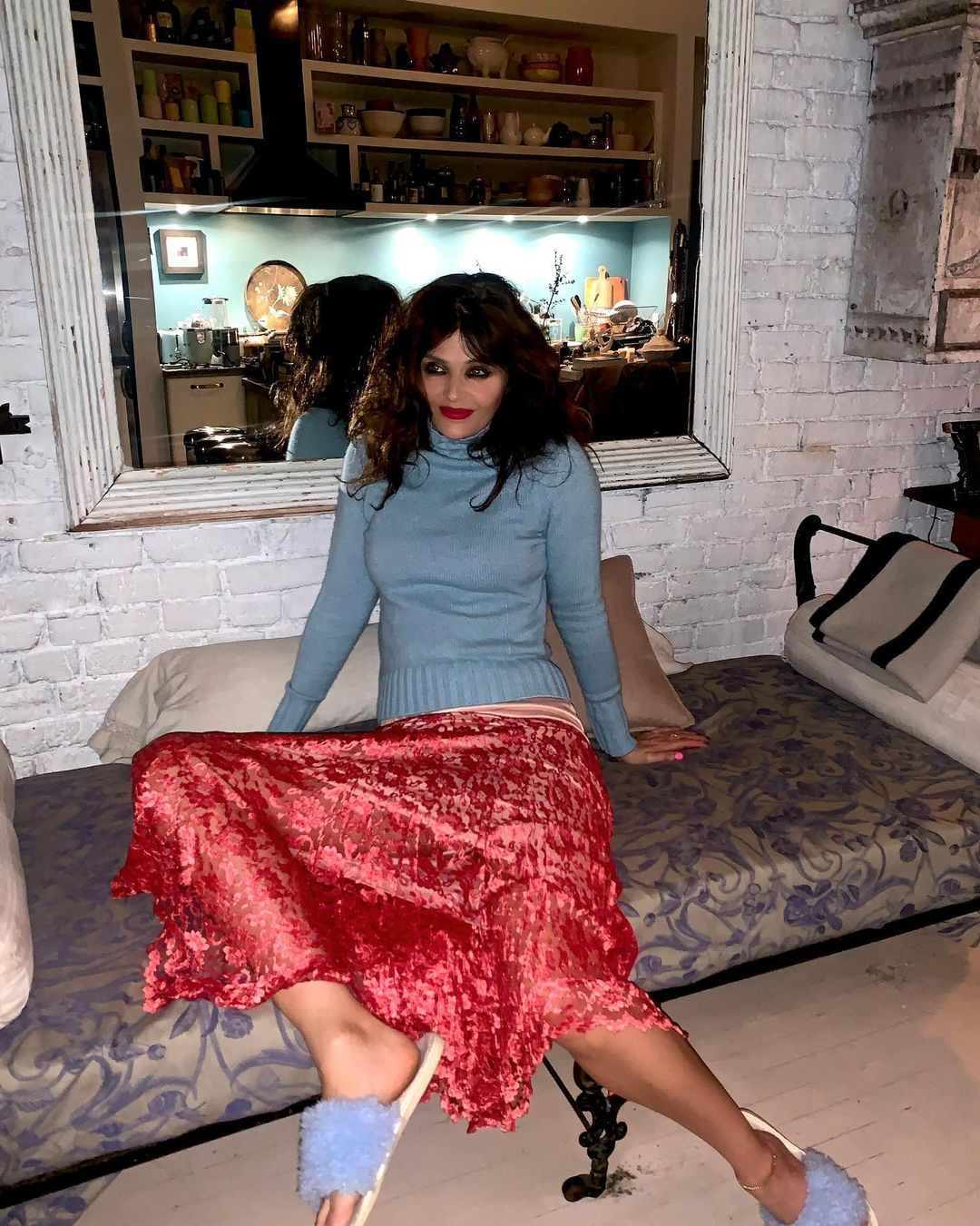 Trong khi nhiều người tỏ ra chán nản vì lệnh đóng cửa tránh dịch COVID-19, Helena Christensen tự tạo niềm vui riêng bằng một buổi trình diễn thời trang "tự biên tự diễn" trong phòng khách.