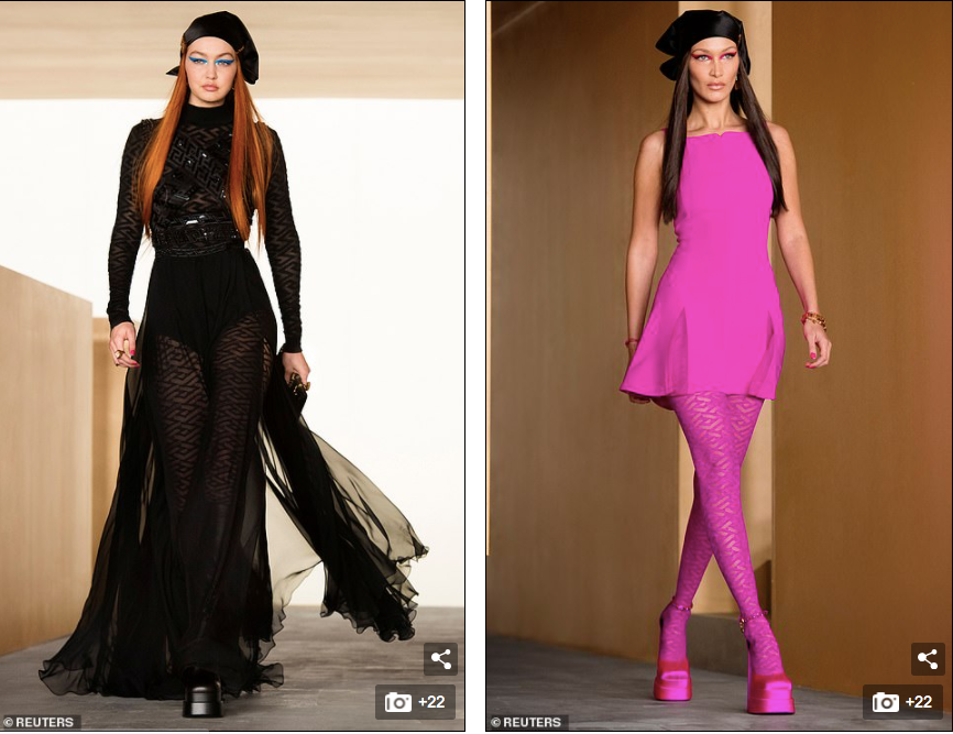 Chị em siêu mẫu Gigi Hadid (trái, SN 1995) và Bella Hadid (SN 1996) cũng trình diễn trong show, khoe hình thể tuyệt mỹ với thần thái quyến rũ hút hồn.