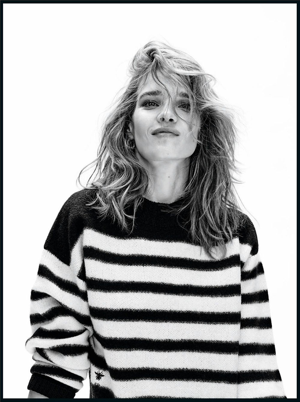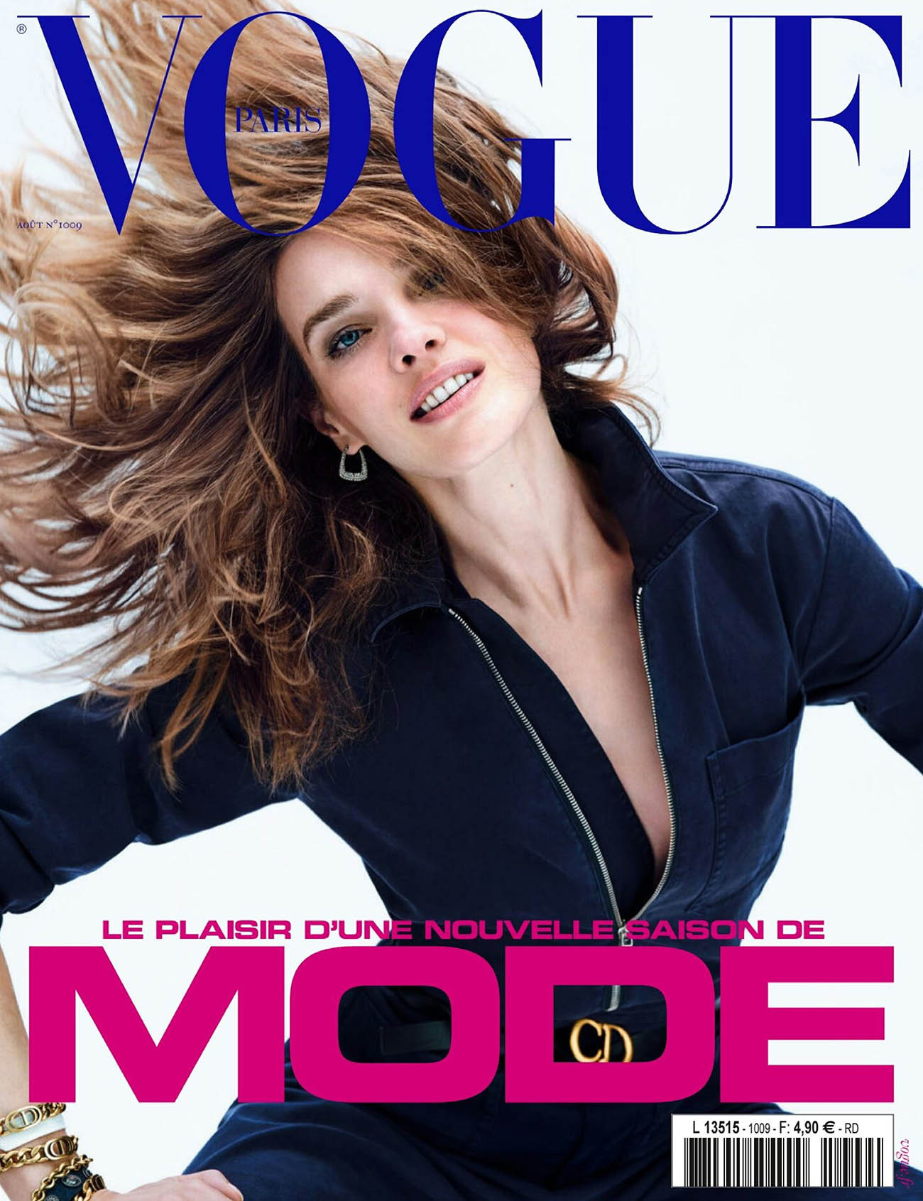 Qua góc máy nhiếp ảnh gia Nathaniel Goldberg, mỹ nhân xứ bạch dương có bức ảnh bìa hất tóc với nhan sắc rạng ngời trên Vogue Paris tháng 8. Cô diện bộ jumpsuit khoét ngực sâu gợi cảm của Dior.