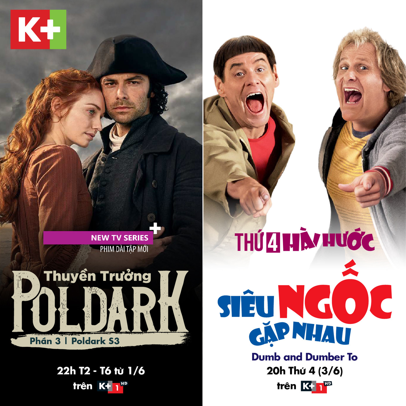 Mời các bạn đón xem bộ phim Thuyền trưởng Poldark 3 vào 22h Thứ 2-Thứ 6 trên Kênh K+1 từ 1/6 và Siêu Ngốc Gặp Nhau 2 vào 20h thứ 4 trên Kênh K+1 ngày 3/6.