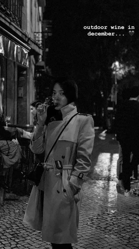 Người đẹp "Hậu duệ mặt trời" thưởng thức rượu trong một chuyến đi gần đây.