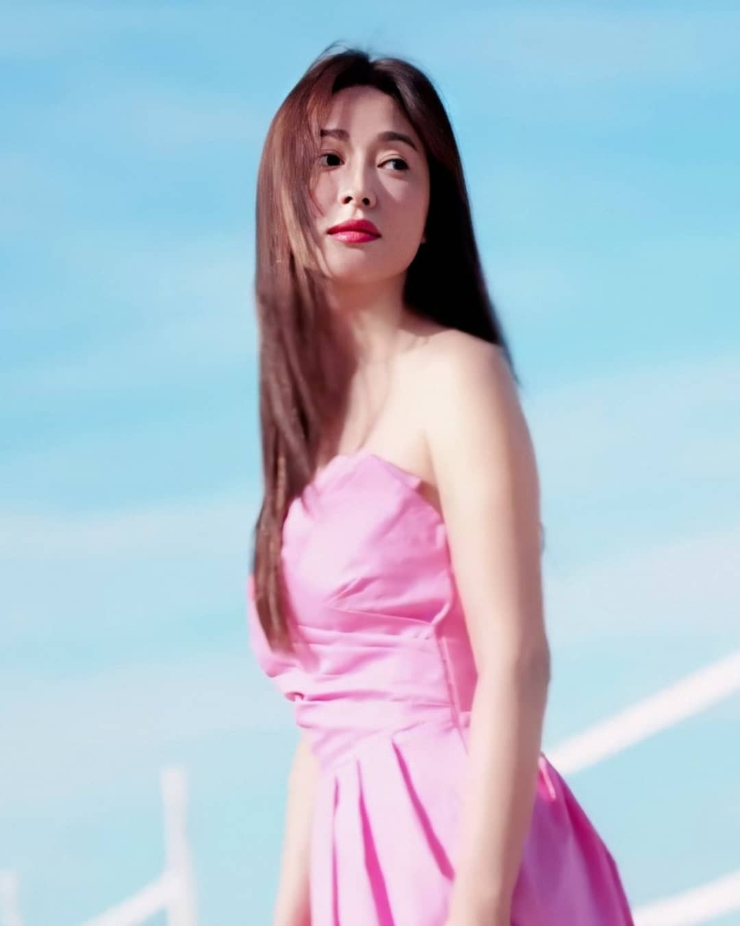 Dù đã gần 40 tuổi, mỹ nhân Hàn Quốc vẫn trẻ trung quá đỗi với đầm cúp ngực màu hồng.