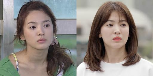 Thuở đóng "Ngôi nhà hạnh phúc" năm 2004, Song Hye Kyo cũng để kiểu tóc buộc lệch gây "sốt" với giới trẻ. Sau 12 năm, nhan sắc người đẹp xứ kim chi vẫn không mấy thay đổi, quyến rũ mong manh với thần thái thu hút nền nã dịu dàng. Ảnh phải là khi cô đóng "Hậu duệ mặt trời" năm 2016.