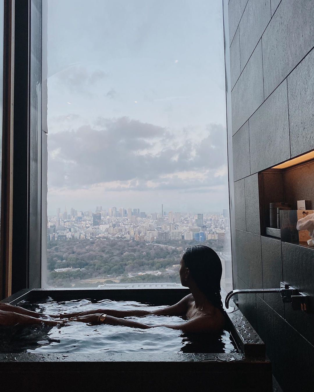 Jasmine đang có chuyến du lịch kết hợp công việc cùng cô bạn thân Josephine Skriver ở Tokyo, Nhật Bản.