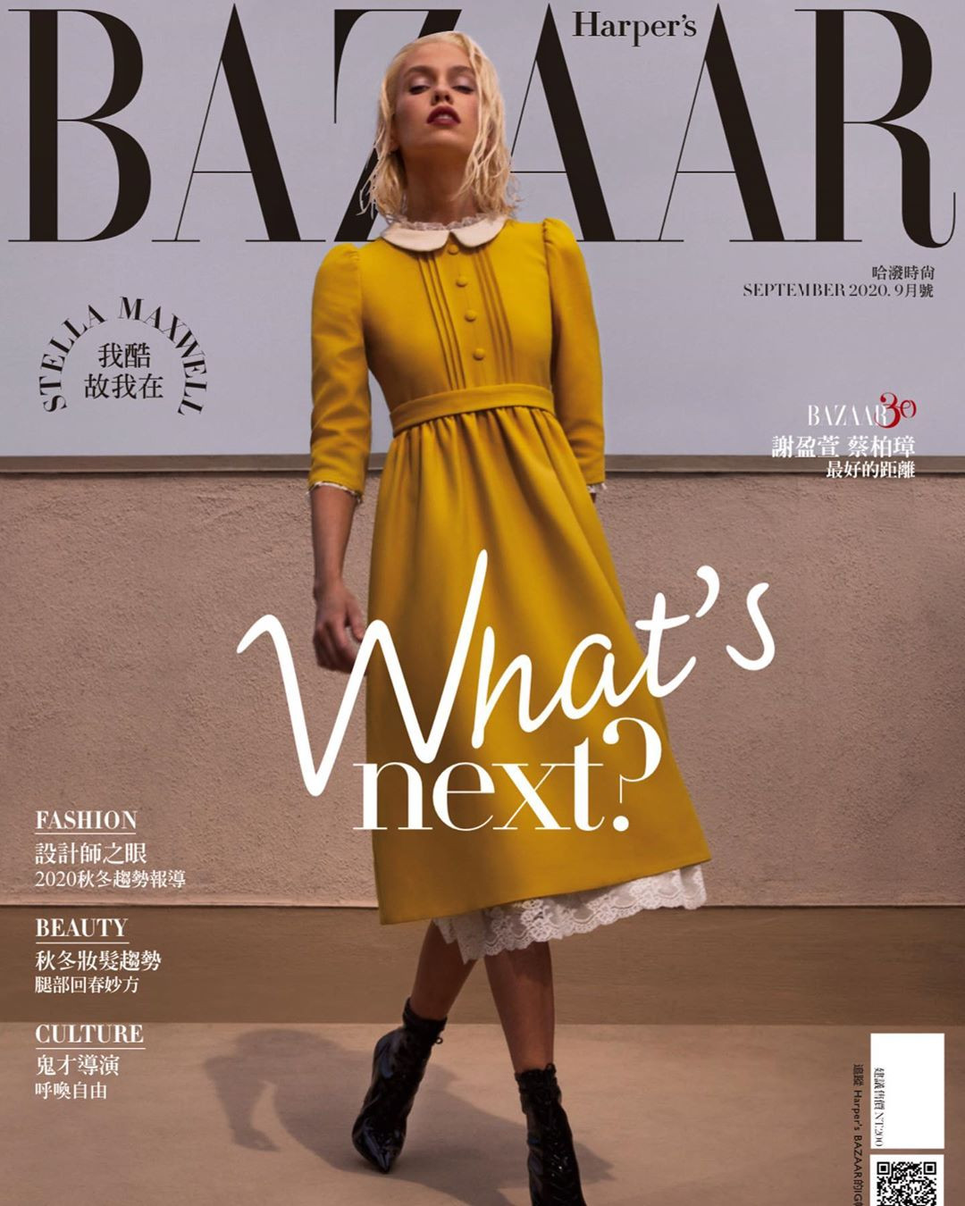 Stella Maxwell diện váy áo style cổ điển trên tạp chí Harper's Bazaar Đài Loan số tháng 9.