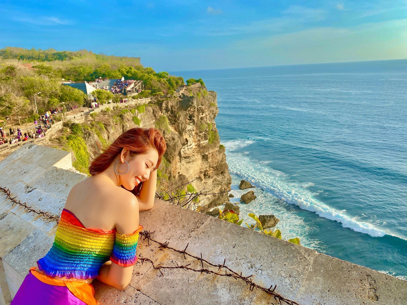 Cô chọn nghỉ dưỡng tại một trong những resort 5 sao được nhiều travel blogger giới thiệu. Resort nằm trên bán đảo Jimbaran, gần Pecatu (phía tây nam Bali), cách xa trung tâm nhưng gần biển, thuận tiện cho việc vui chơi.