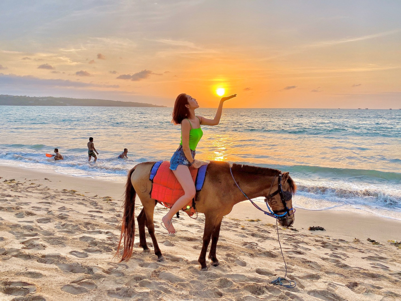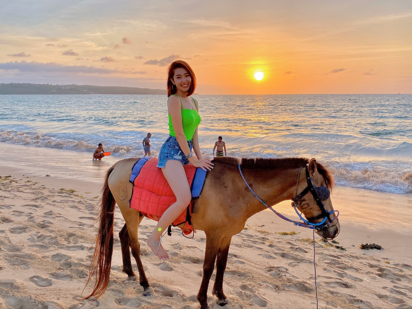 Người đẹp không quên cảm giác đặc biệt khi ngồi trên lưng ngựa dạo biển trong một buổi chiều hoàng hôn.
