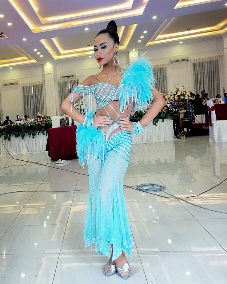 Nhã Uyên không cao, đổi lại sở hữu thân hình thon gọn, săn chắc nhờ nhiều năm luyện tập dancesport.