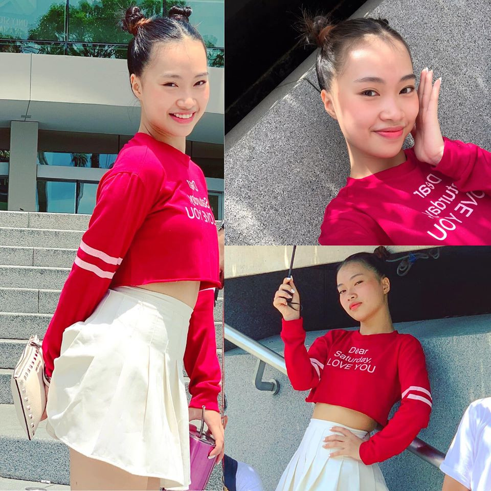 Nhã Uyên sở hữu gương mặt xinh xắn, ưa nhìn. So với lối trang điểm đậm lúc biểu diễn, nữ vận động viên 9x trong đời thường trẻ trung hơn nhiều.