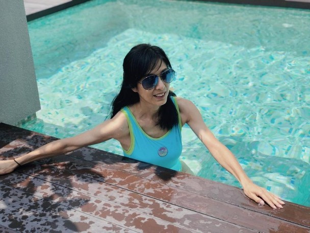 Mễ Tuyết khoe dáng trong bộ đồ bơi một mảnh.