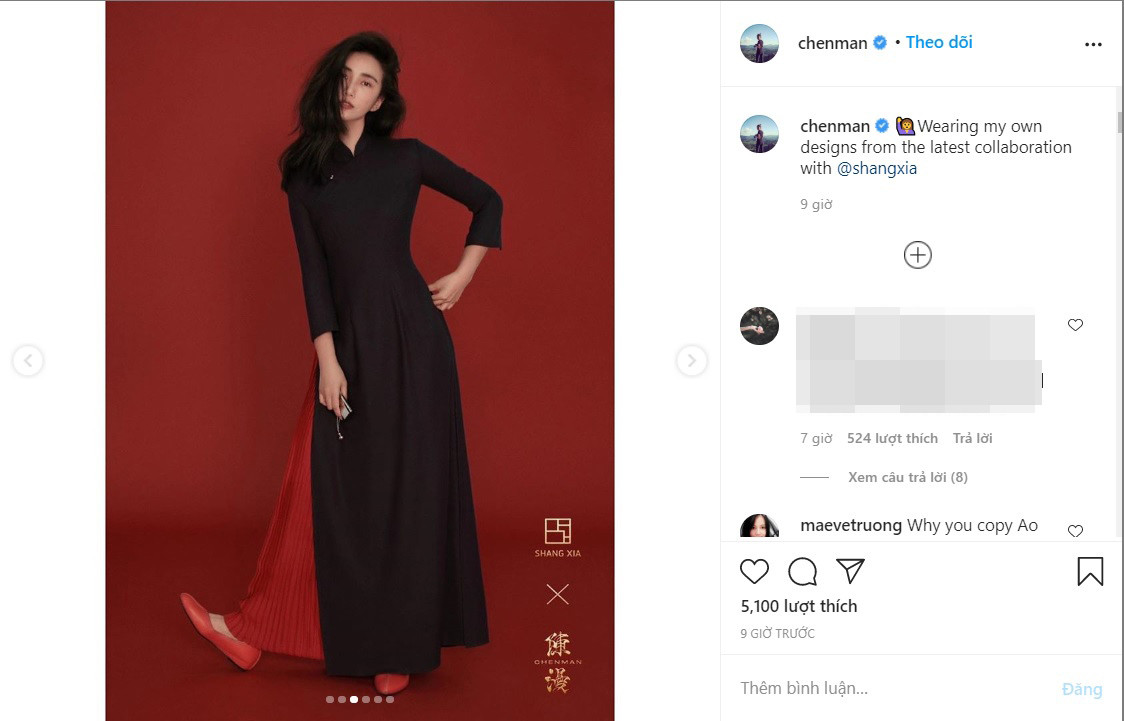 Trần Mạn -nữ nhiếp ảnh gia nổi tiếng trong giới thời trang Trung Quốc mới đây đã đăng tải hình ảnh trên Instagram và Facebook, nói rằng đây là thiết kế của mình. Tuy vậy, bộ trang phục này lại rất giống với Áo dài của Việt Nam. Chính vì vậy, cộng đồng mạng Việt đổ xô vào trang cá nhân của Trần Mạn gọi đây là đạo phẩm, yêu cầu nữ nhiếp ảnh làm rõ sự việc
