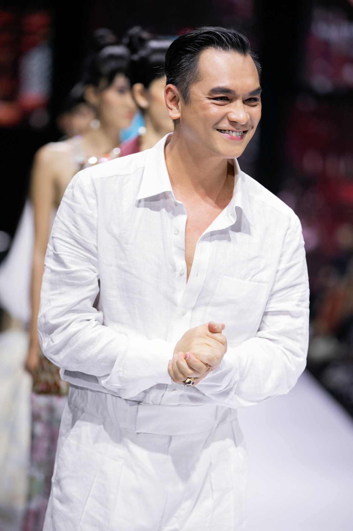 Cựu người mẫu Đức Hải cũng có màn tài xuất sàn diễn trong bộ trang phục màu trắng tôn lên vẻ điển trai và phong độ.