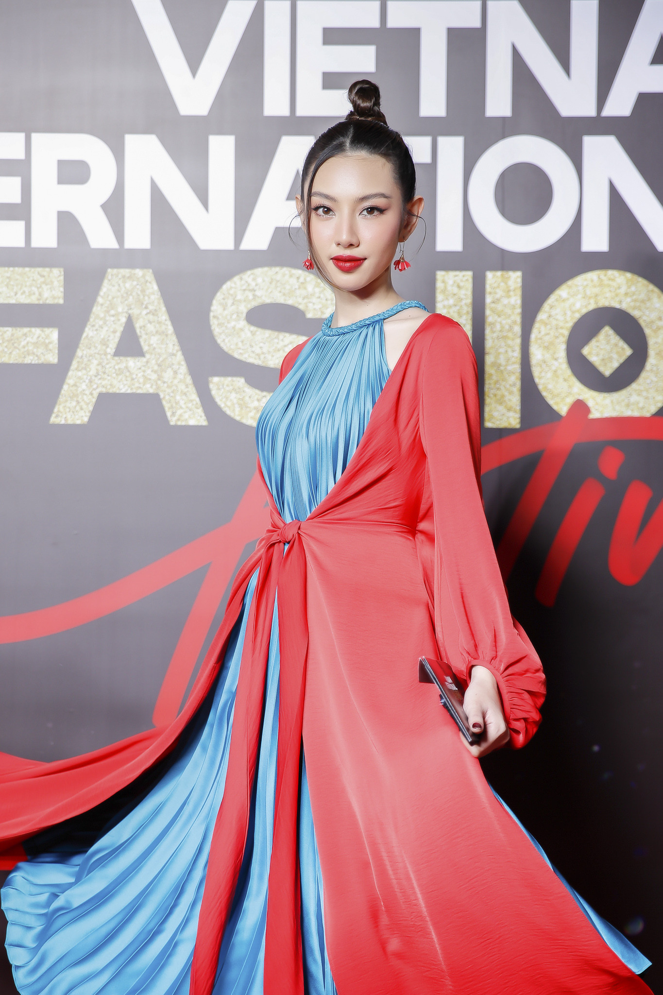 Á hậu Trương Thị May gây ấn tượng với set đồ rực rỡ màu sắc trên thảm đỏ.