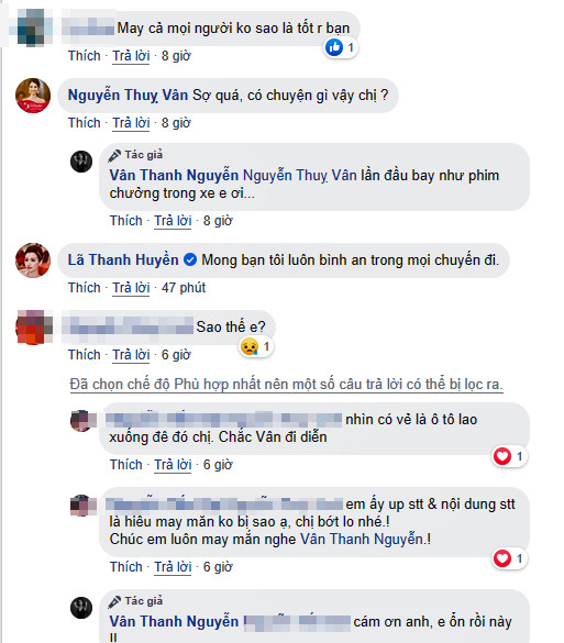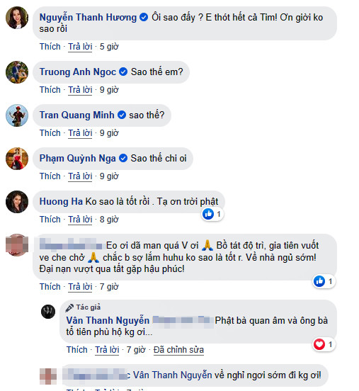Bài viết của Vân Hugo nhanh chóng khiến nhiều bạn bè là nghệ sĩ lo lắng và liên tục hỏi thăm tình hình hiện tại.