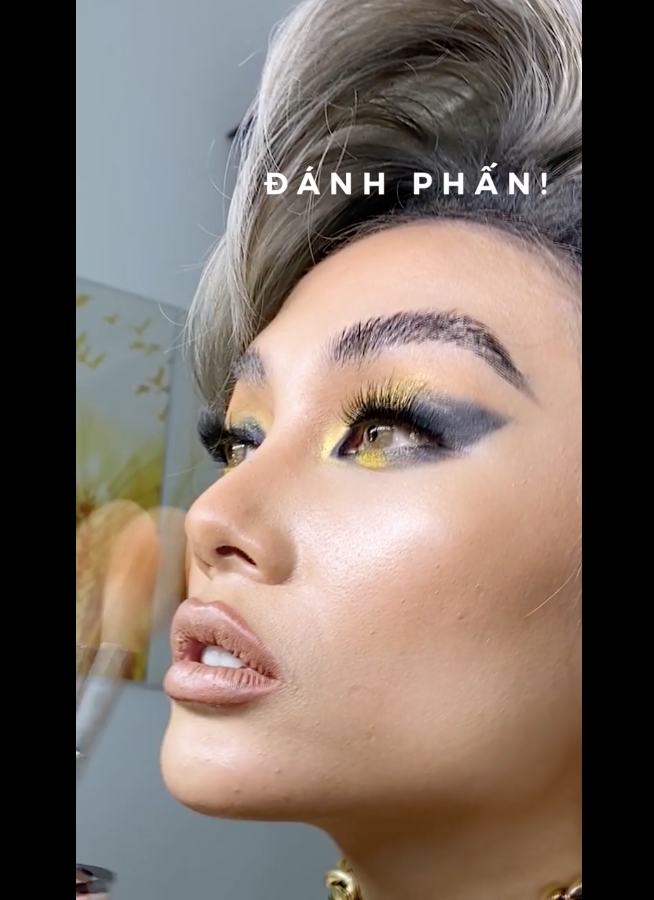 Võ Hoàng Yến cũng đánh phấn kỹ càng để tôn lên nét đẹp kiêu sa vốn có của mình.