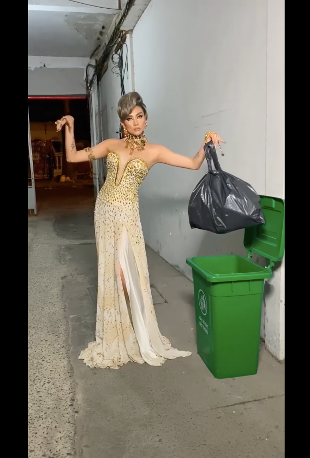 Có lẽ chưa ai đi đổ rác mà tạo dáng chuyên nghiệp và 'thần sầu' như Võ Hoàng Yến.