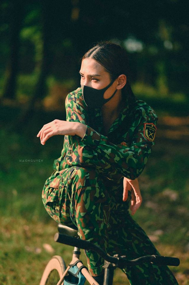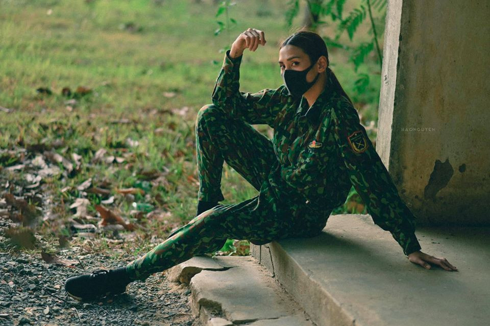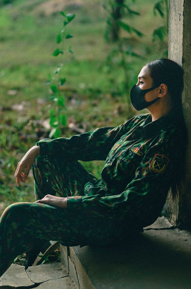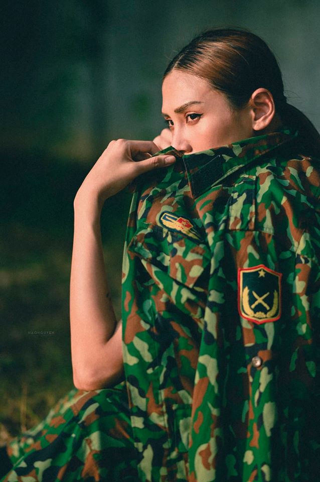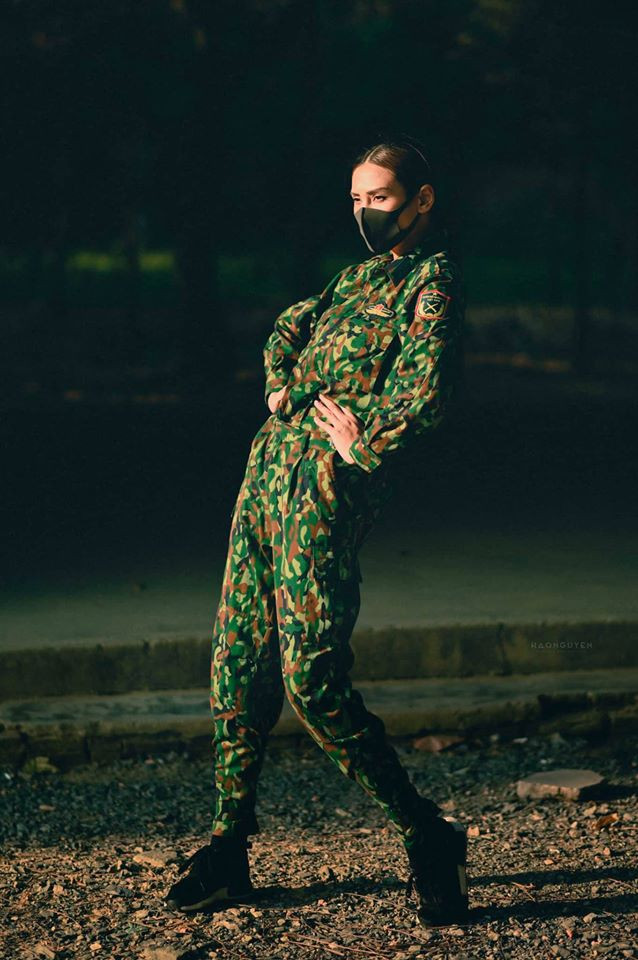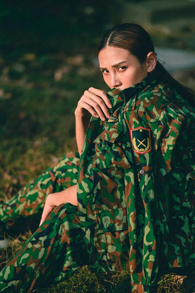 Trong bộ ảnh, Võ Hoàng Yến hoá nữ quân nhân xinh đẹp với bộ quân phục độc đáo được cô phối theo phong cách phóng khoáng, cá tính.