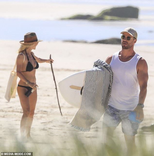 Chris Hemsworth và vợ Elsa Pataky thảnh thơi dạo biển ở Vịnh Byron vào hôm qua. Cặp đôi không đeo khẩu trang giữa tình hình dịch COVID-19 diễn biến phức tạp.