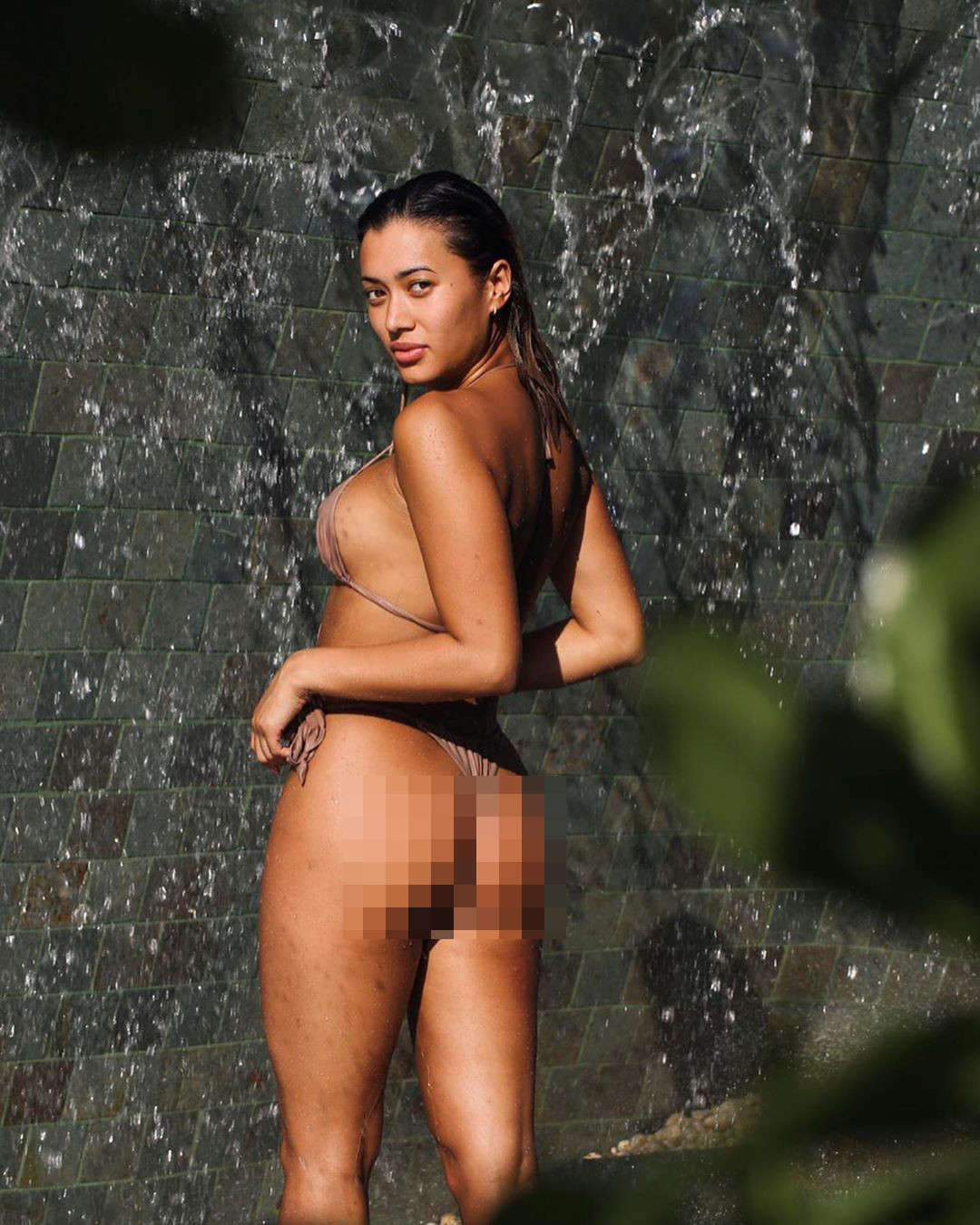Các động tác đôi lúc còn vụng về nhưng đều lu mờ trước đường cong và màu da nâu nóng bỏng của mỹ nhân 9x. "Rửa sạch corona", cô chú thích kèm theo đoạn video.