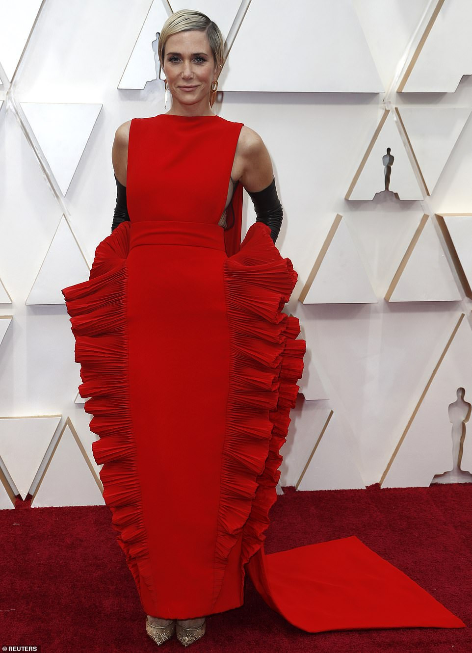 Chiếc váy đỏ của Kristen Wiig bị so sanh với hình ảnh "sâu bướm".