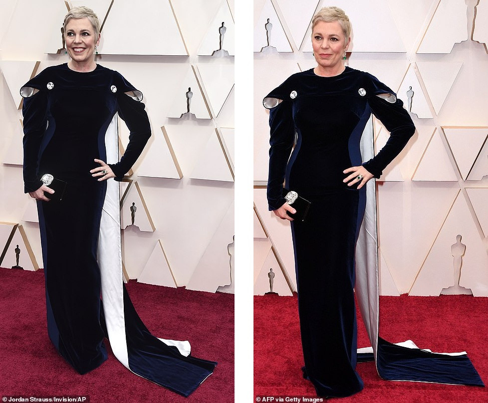 Theo Daily Mail, đường cắt ở phần vai của chiếc váy mà Olivia Colman mặc trông kỳ quặc.