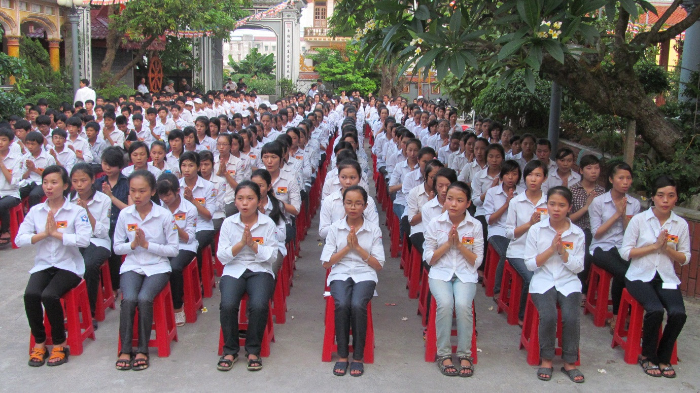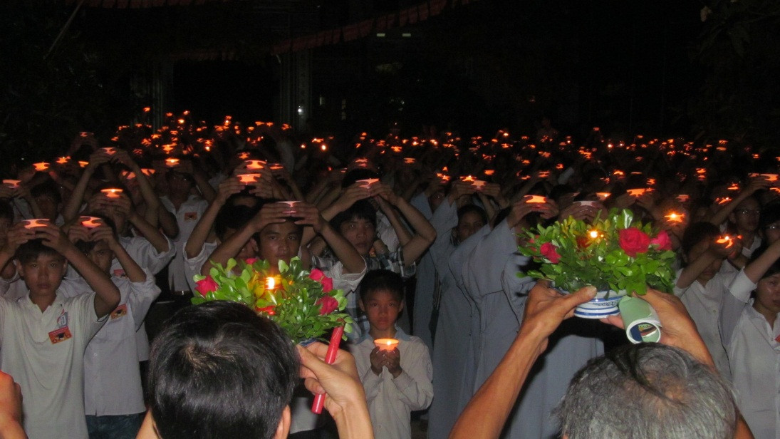 Trong không khí trang nghiêm dưới mái chùa cổ kính hòa cùng lời kinh tiếng kệ các em đã cùng nhau thắp nến và cầu nguyện buổi lễ diễn ra trong tinh thần hoan hỷ đượm nhuần tinh thần từ bi trí tuệ của nhà Phật với 500 gương mặt tiêu biểu của các trường các lớp và đông đảo các bậc phụ huynh tín đồ Phật tử