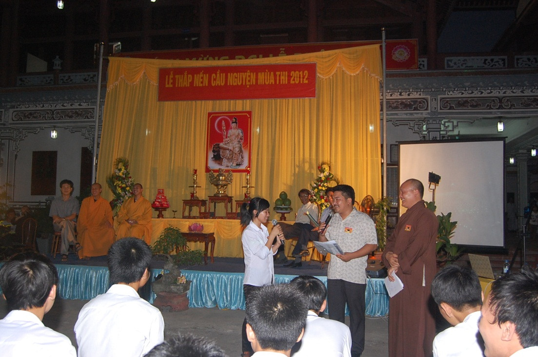 Chuẩn bị cho kỳ thi tốt nghiệp và kỳ thi tuyển sinh đại học năm 2012, Ngày 19 tháng 5 tại Chùa Linh Quang Diêm Điền khu 4 Tthị trấn Ngô Đồng, Giao Thủy, Nam Định,Chư tôn đức Tăng ni phối hợp cùng với ban giám hiệu các trường THPT và THCS trong huyện tổ chức lễ thắp nến cầu nguyện và tư vấn mùa thi nhằm mục đích giúp các em có được một sức khỏe, tâm trạng và các kiến thức cần thiết trong các kỳ thi sắp tới.