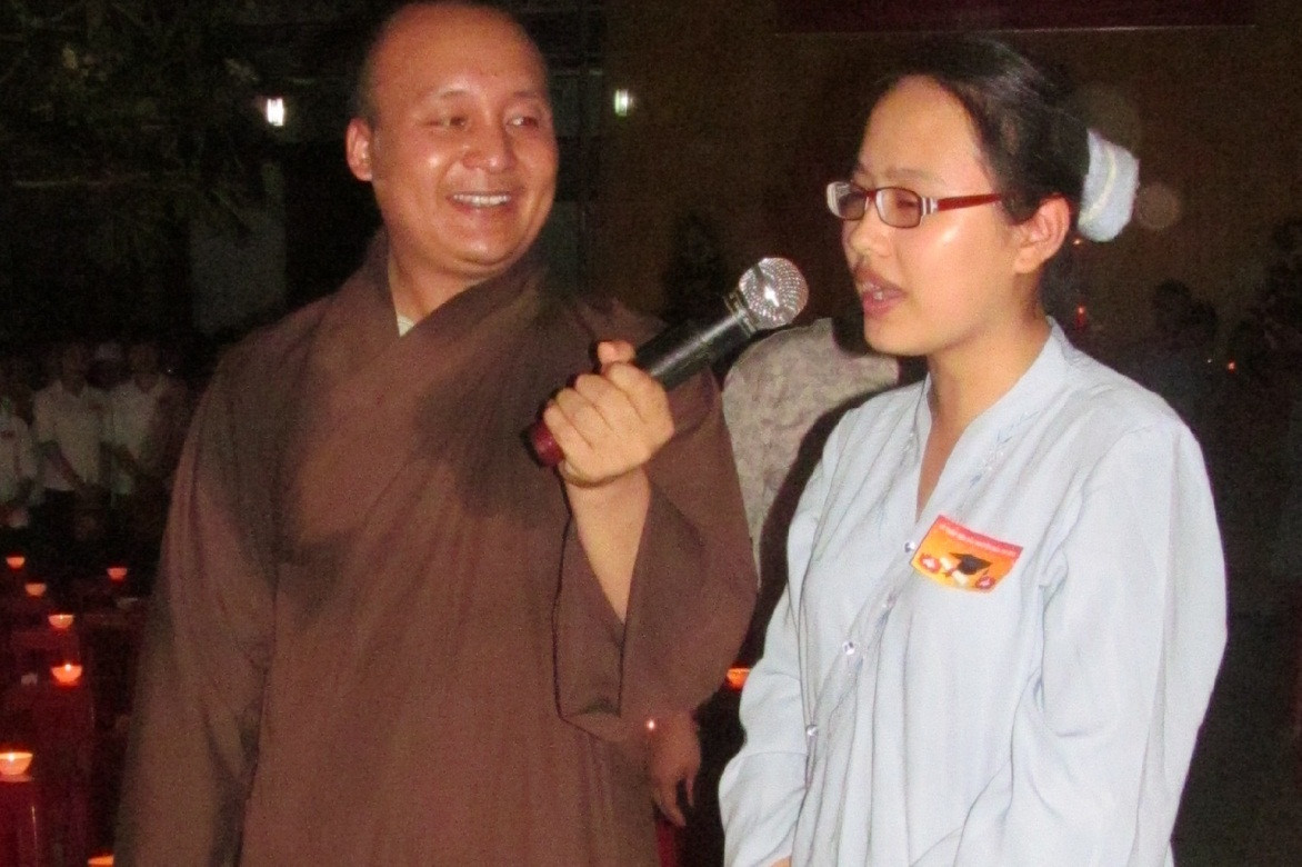 Tại buổi lễ ban tổ chức đã thực hiện chương trình chia sẻ và tư vấn thông qua những câu hỏi của các em. Quý vị tăng ni và quý thầy cô giáo đã có những lời khuyên và lời chia sẻ tâm tình lời tư vấn thực tế để các em có được nhiều điều lợi ích trong việc ôn tập kiến thức và tham gia các kì thi