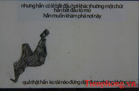 Tác phẩm siêu thảm họa chính tả này gồm sáu trang truyện tranh phóng to được lồng trong khung và treo ngay lối ra vào. Có lẽ để nhấn mạnh mà nhan đề truyện được viết in hoa tất cả các chữ cái đầu: " Ngụ Ngôn Về Ước Mơ".